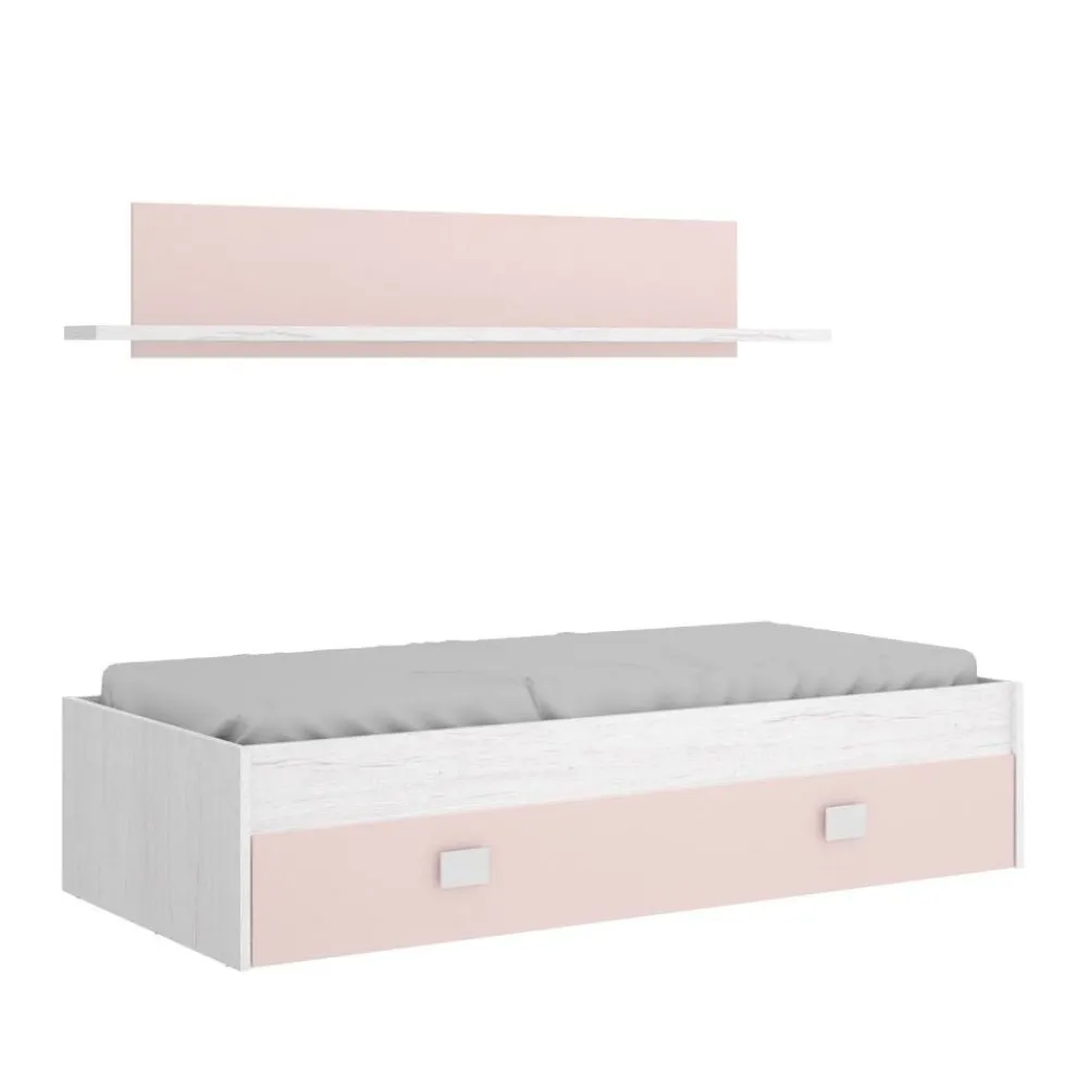 El ahorro está presente al comprar esta cama nido con un amplio cajón en la parte inferior, se trata de una cama infantil preparada para un colchón de 90 x 190 cm, debes de tener en cuenta que el somier no está incluido. Con un bonito acabado en blanco Articcombinado en rosa, tortora, aguamarina o grafito, se trata de una cama nido para dormitorios infantiles de niñas y niños, además para aumentar la capacidad de almacenamiento del dormitorio juvenil incluye un amplio cajón en la parte inferior.
