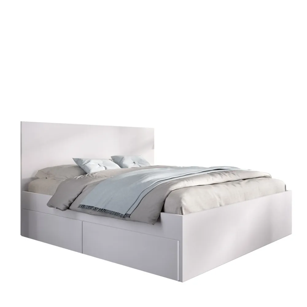 Dale un nuevo aire a tu habitación con la estructura de cama Lago, de 145,4 cm de ancho y en color blanco. Ideal para cualquier estilo de dormitorio, ofrece una solución práctica con sus cuatro cajones de almacenamiento y su cabecero alto.