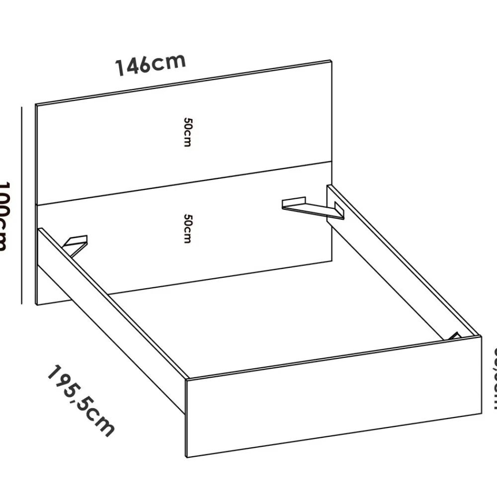 - Estructura de cama con cabecero: 145,4 cm (ancho) x 100 cm (alto) x 195 cm (fondo)