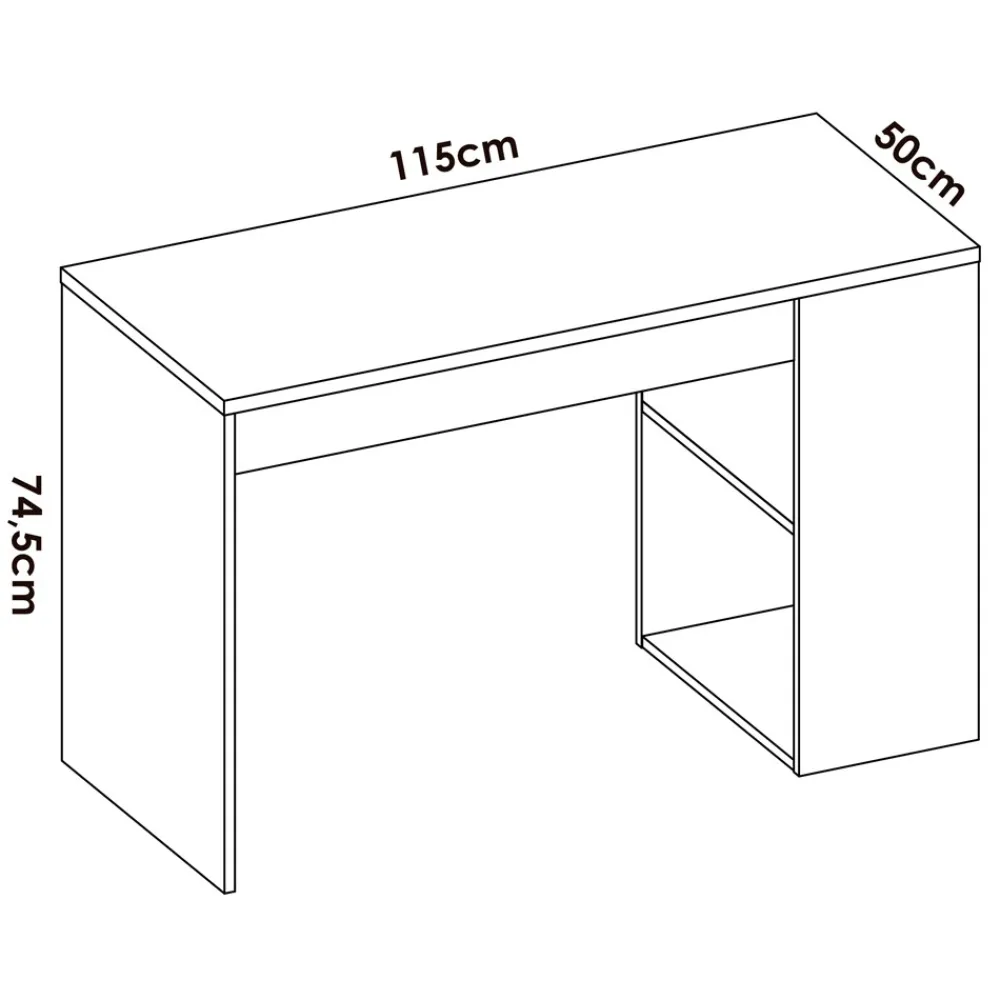 - Escritorio: 115 cm (ancho) x 74 cm (alto) x 50 cm (fondo)