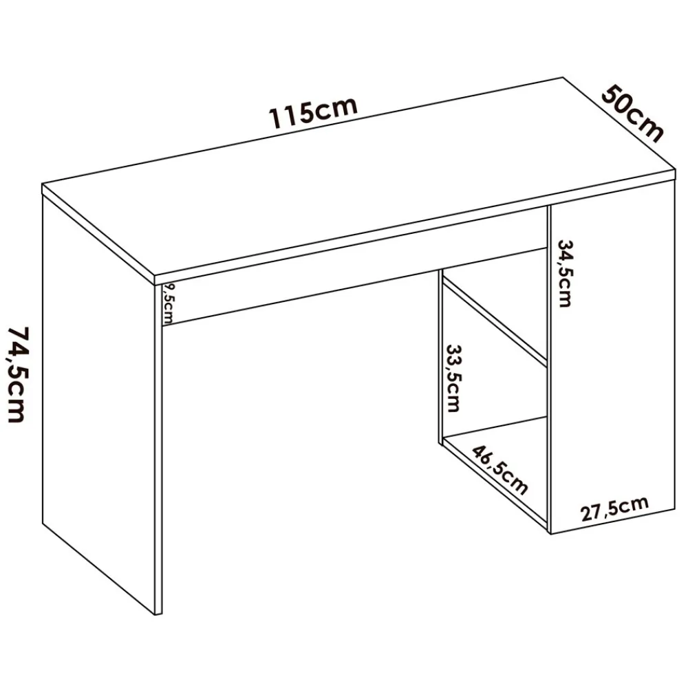 - Escritorio: 115 cm (ancho) x 74 cm (alto) x 50 cm (fondo)