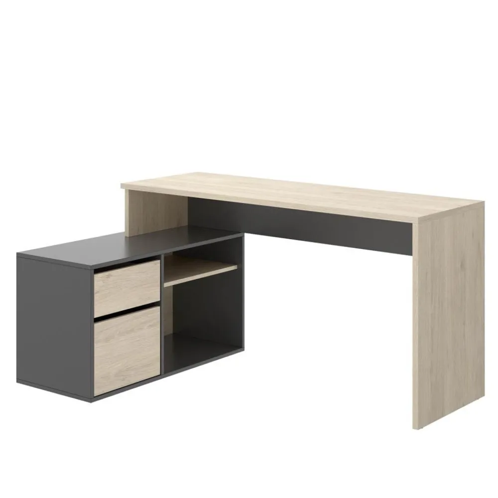 DEKIT Escritorios Esquineros Juveniles|Escritorios De Madera Juveniles^Escritorio Angular Rox Con Cajón Roble Natural – Grafito 139 X 75 X 92 Cm