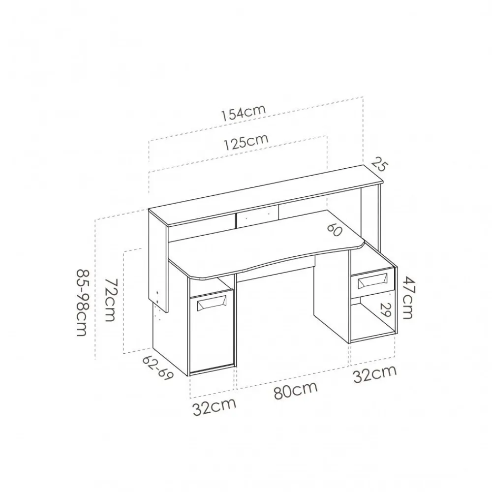 - 85 -98 cm (alto) x 154 cm (ancho) x 62-69 cm (fondo)