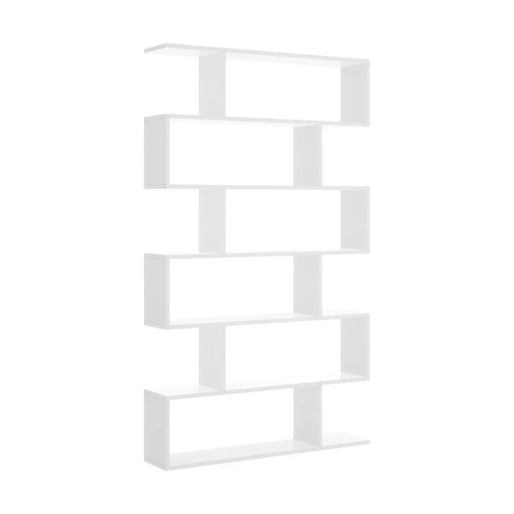 Una bonita estantería en color blanco brillo que sirve tanto para decorar el salón o cualquier otra habitación de la casa, en forma de zig-zag o cremallera dispone de 6 huecos principales en forma de rectángulo y otros 6 huecos al aire en los que también puedes colocar objetos decorativos.