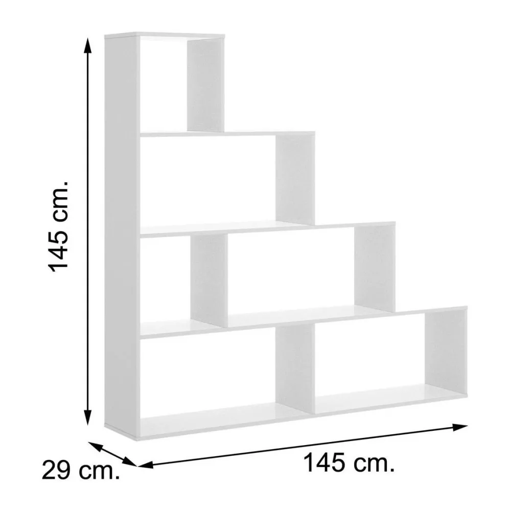 La estantería de pared Ten con un diseño moderno en forma de escalera, está realizada en matieralas de primera calidad y con un espectacular acabado en blanco brillo, esta estantería para libros u objetos decorativos puede utilizarse para separar ambientes.