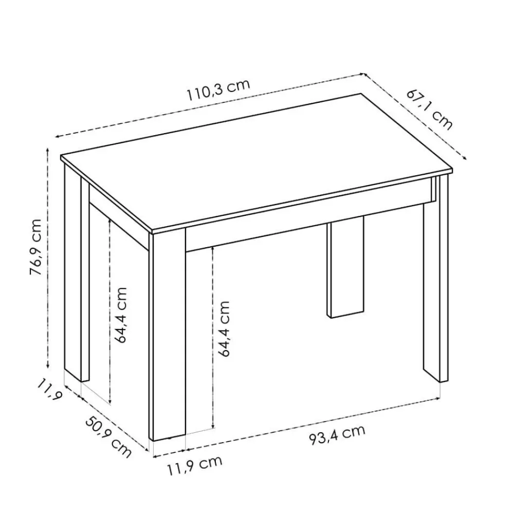 - Mesa auxiliar cocina: 110,3 cm (ancho) x 77 cm (alto) x 67,1 cm (fondo)