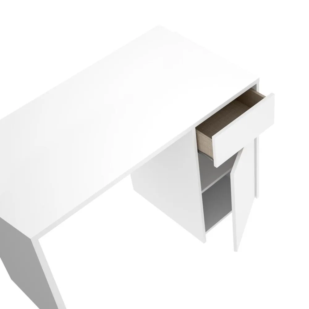 La mesa de estudio Bali con 1 cajón y 1 puerta, es perfecta para instalar en cualquier habitación de la casa, añadiendo un espacio adecuado para el estudio o para trabajar desde casa. Diseño moderno en color blanco, perfecta para combinar con cualquier estilo decorativo.