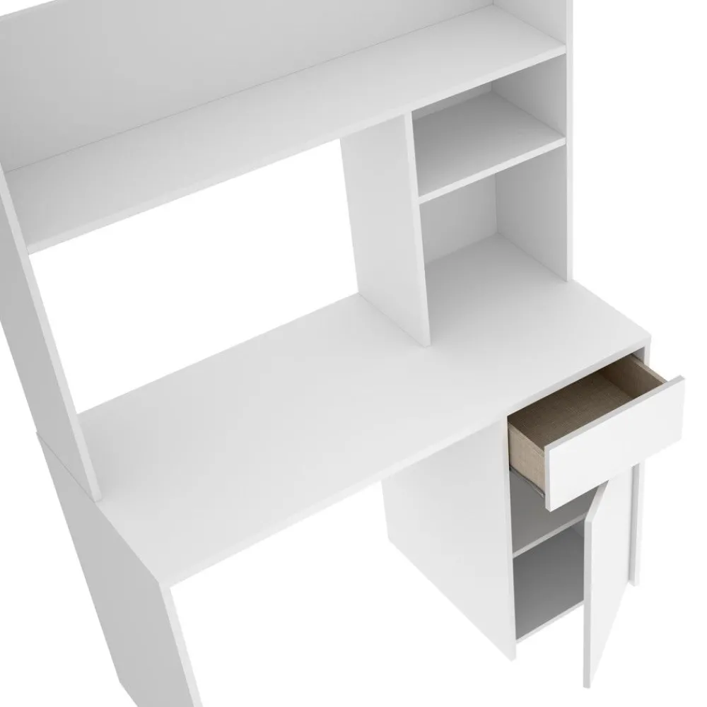 Mesa de estudio Bali blanca con cajón, puerta y estantería