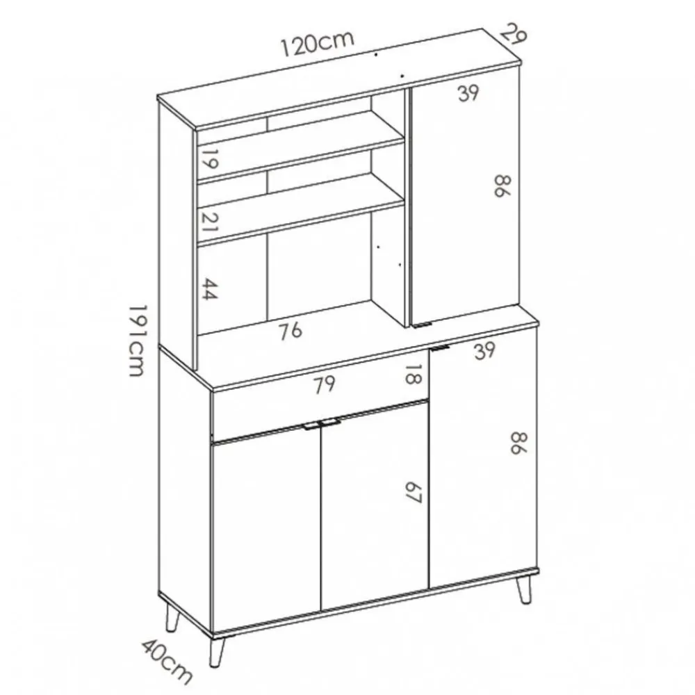 Mueble auxiliar de cocina tipo office aparador de 4 puertas y un cajón, muy funcional. Dispone de hueco central en el que podemos colocar los elementos que queremos tener siempre a mano en nuestra cocina. Destaca por ser un armario de cocina con gran capacidad de almacenamiento. Su diseño de estilo nórdico gracias a su acabado en blanco combinado con natural, aporta un toque luminoso a nuestra cocina
