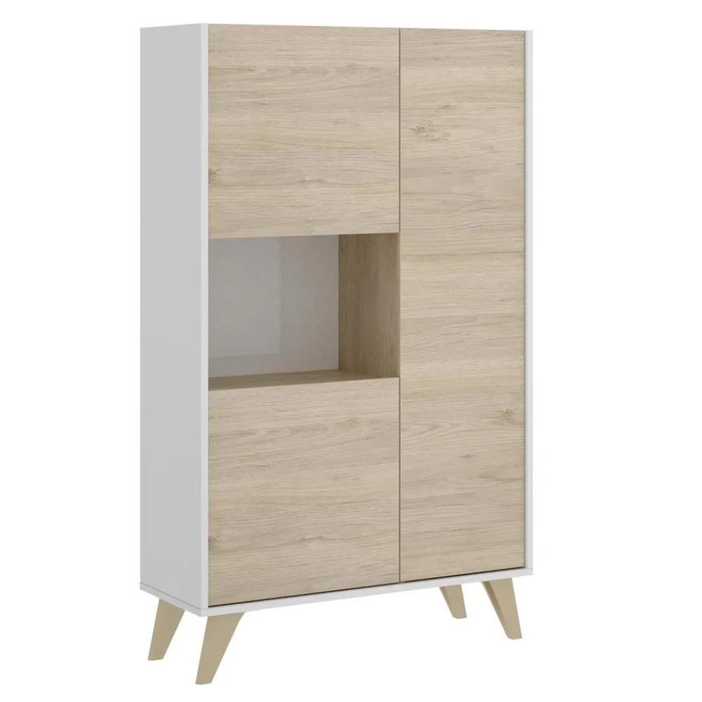 Módulo vertical de estilo nórdico adaptable a diferentes estancias. Compuesto por 3 puertas y 4 estantes, nos ofrece mucho espacio de almacenaje.