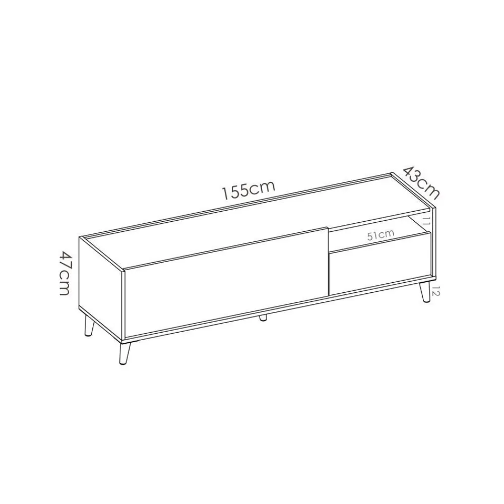 - Dimensiones: 155 cm (ancho) x 47 cm (alto) x 43 cm (fondo)