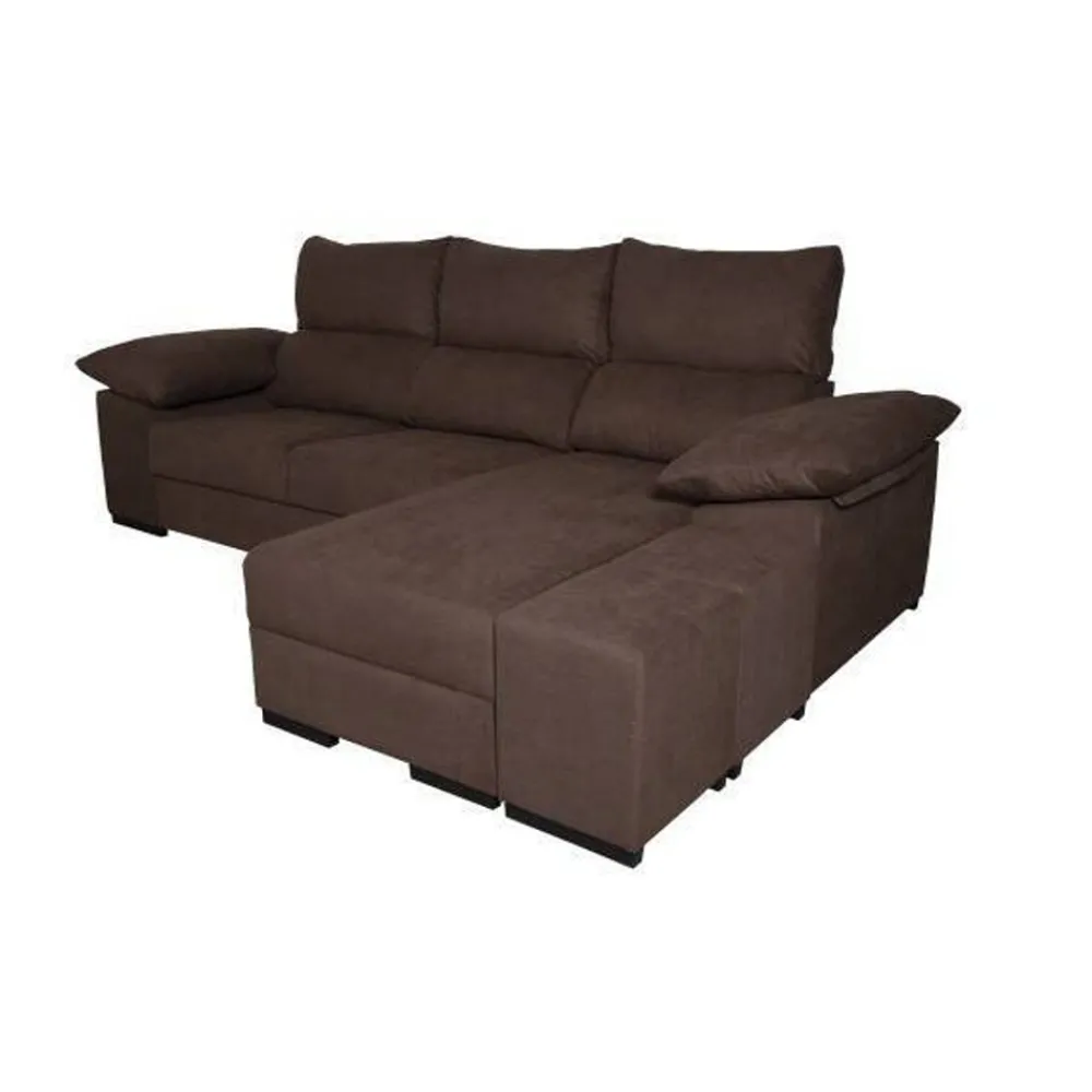 El sofá chaiselongue Chipre es una pieza versátil y funcional que destaca por su gran capacidad de almacenaje gracias a su arcón y los 2 poufs incluidos. Tapizado en tela Crystal color chocolate, es ideal para salones modernos o contemporáneos. Sus asientos son extraíbles y cuenta con reposacabezas reclinables, ofreciendo un confort excepcional.