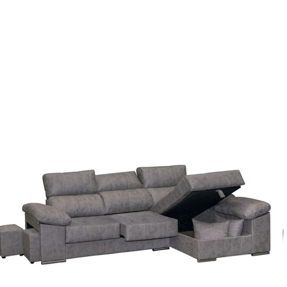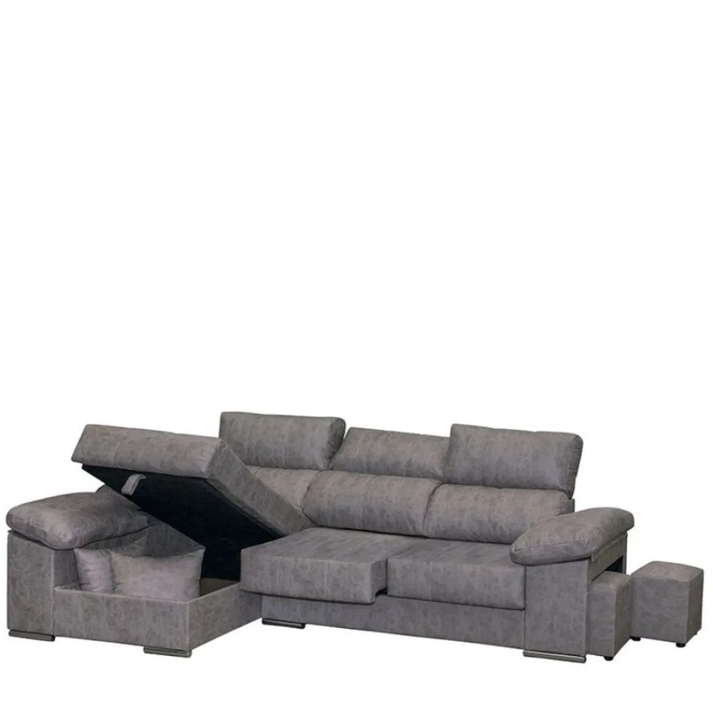 El sofá chaise longue Francia, con un elegante tapizado en tela marengo, es la opción perfecta para quienes buscan funcionalidad y comodidad. Este sofá cuenta con asientos extraíbles, respaldos reclinables y un amplio arcón. Además, incluye dos puffs integrados en el brazo tipo siesta para maximizar la practicidad sin sacrificar el estilo.