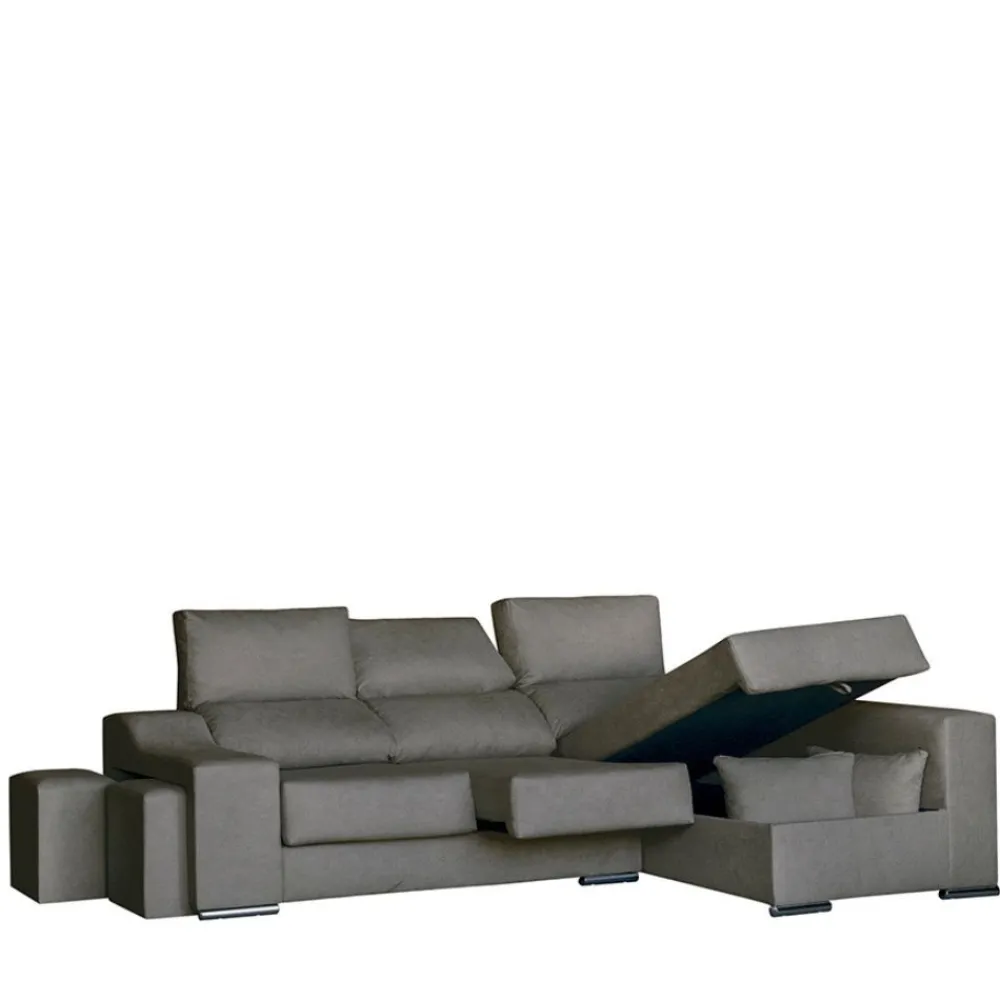 - Sofá chaise longue con arcón: 265 cm (ancho) x 100 cm (alto) x 80,5 cm (fondo sofá), 140 cm (fondo chaise longue)