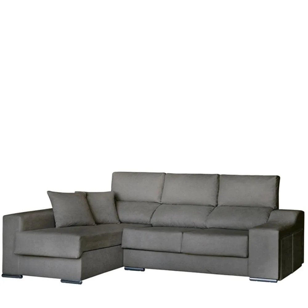 El sofá chaise longue Málaga, tapizado en tela Cairo antracita, es la opción ideal para quienes buscan estilo y funcionalidad. Con asientos extraíbles, respaldos reclinables y un amplio arcón en el módulo chaise longue, este sofá es perfecto para espacios modernos. Además, incluye dos puffs integrados en el brazo tobogán abierto.