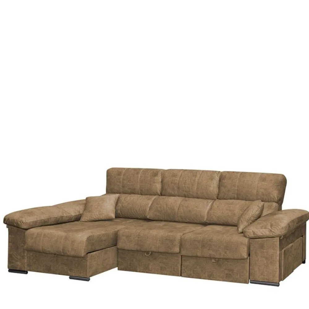 Sofá chaiselongue Roma en microfibra algodonada Edi color camel con cama y arcón
