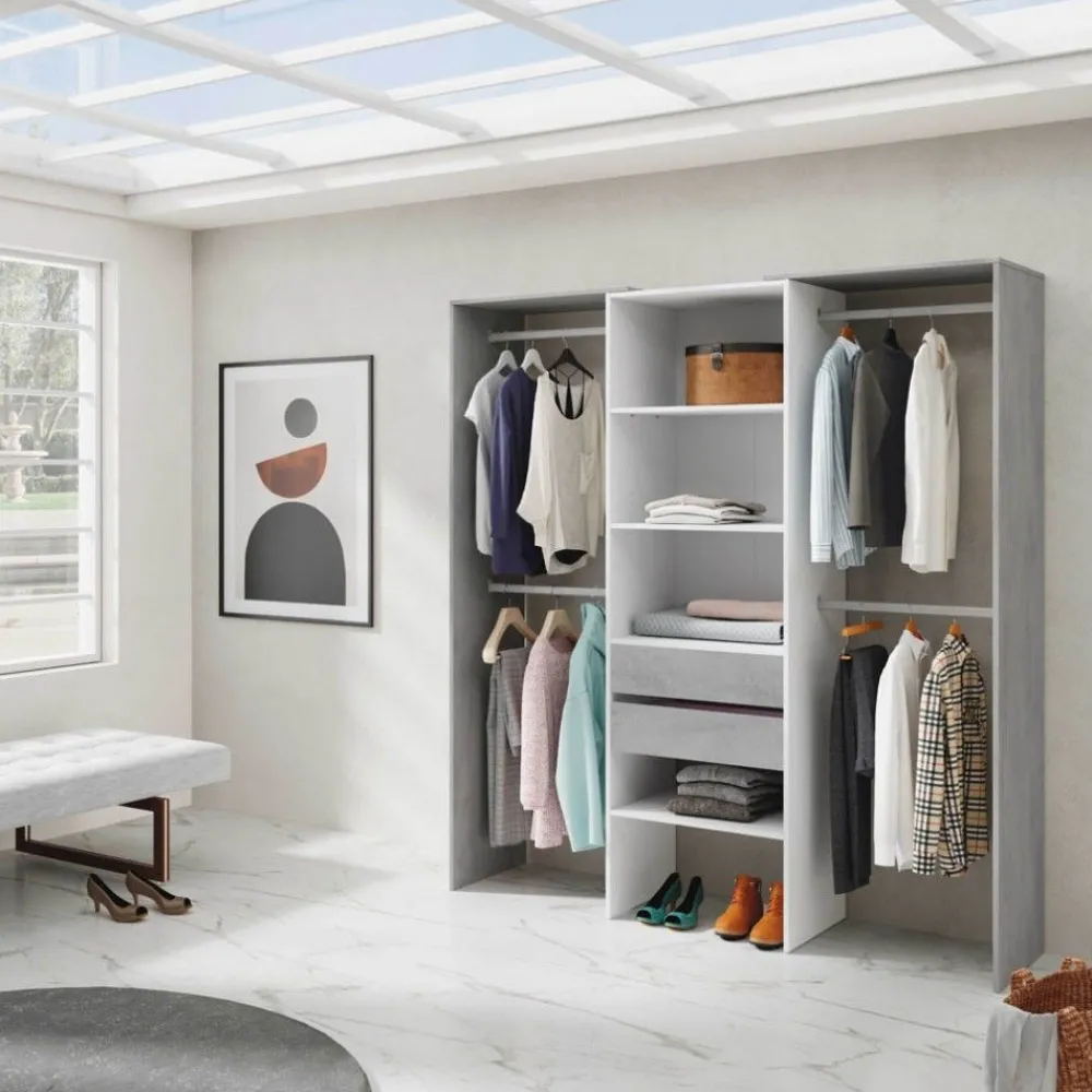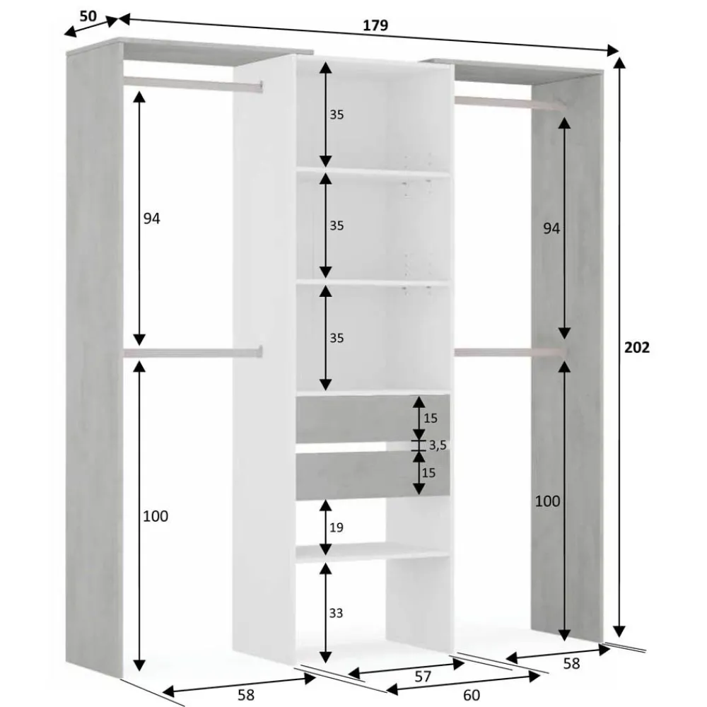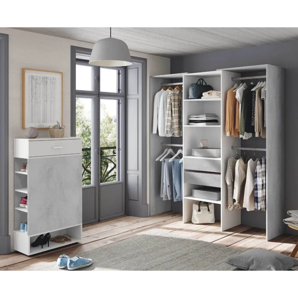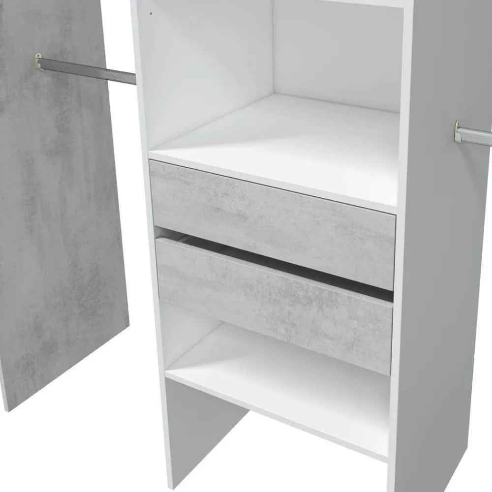 FORES Armarios Blancos^Vestidor Sin Puertas 2 Cajones Tidy Blanco Artik – Cemento 179 X 202 X 50 Cm