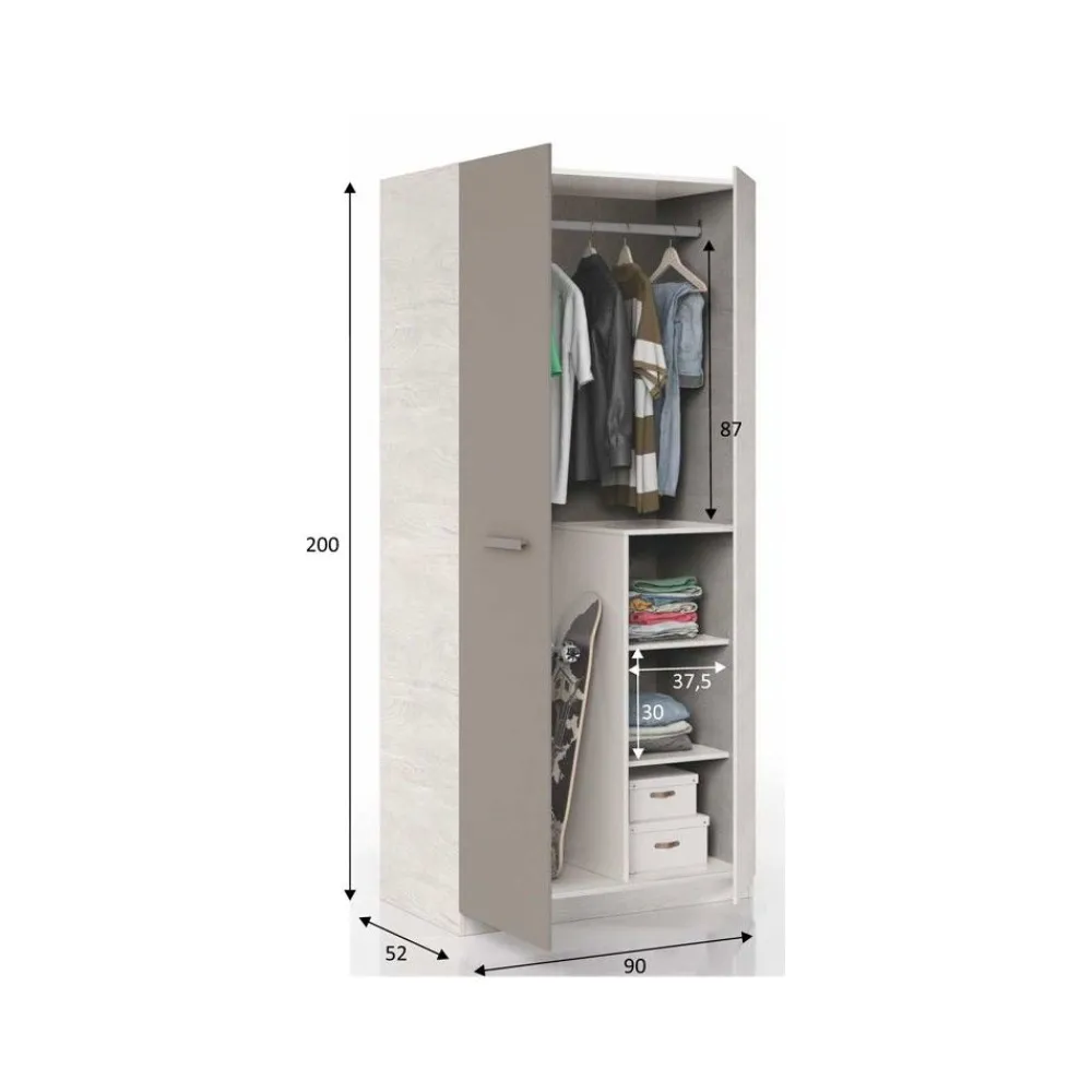 FORES Armarios Juveniles^Armario Juvenil Blanco Alpes – Basalto Ares Plus 90 X 200 X 52 Cm