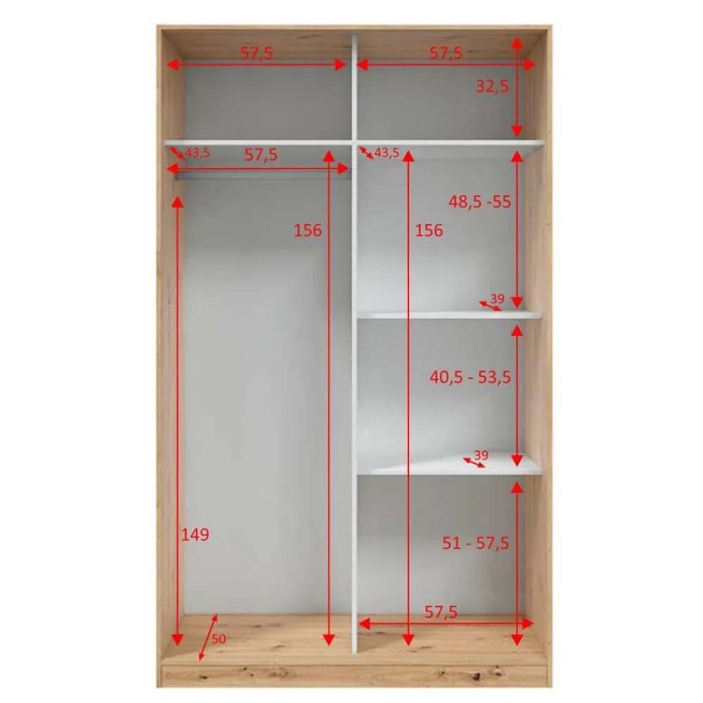 FORES Armarios Puertas Correderas^Armario Organizador De Ropa 120 Cm Roble Nodi TOP020W 120 X 200 X 50 Cm