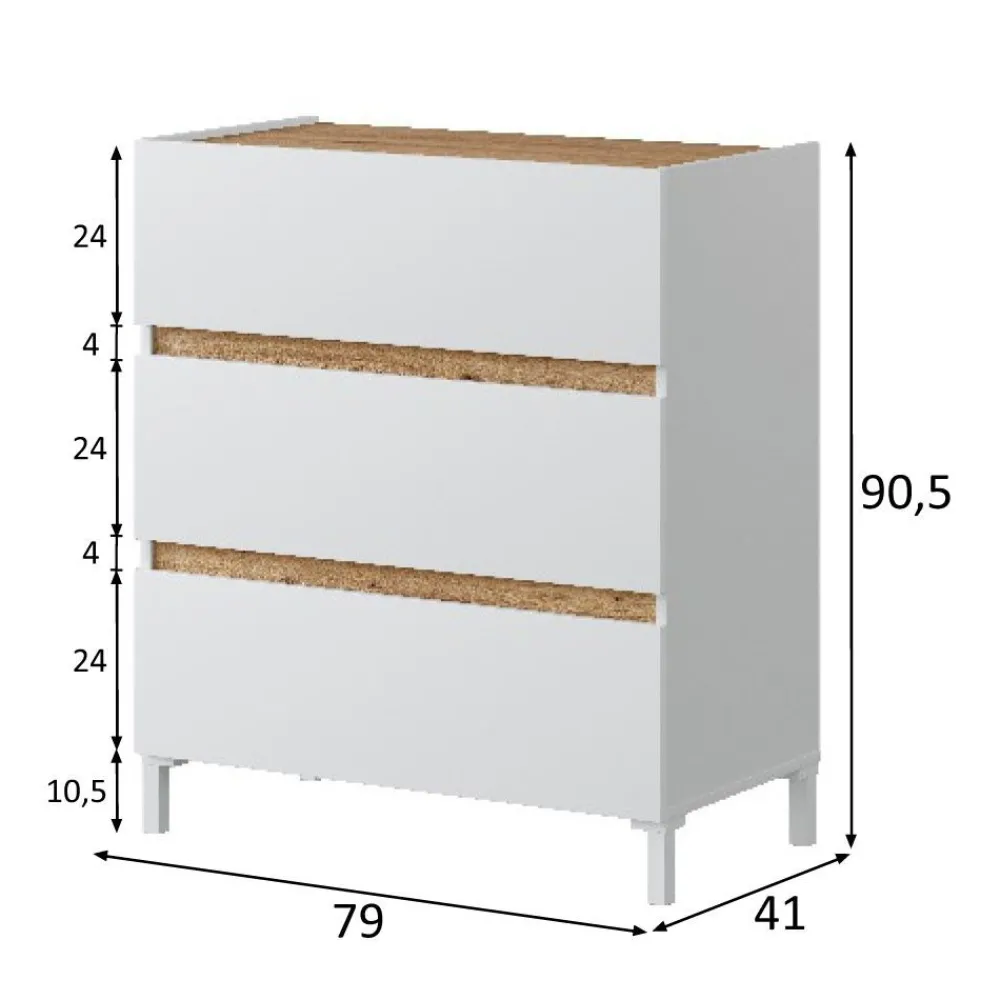 FORES C贸modas^Cómoda 3 Cajones Tempus Blanco Artik – Roble Nodi 79 X 90,5 X 41 Cm