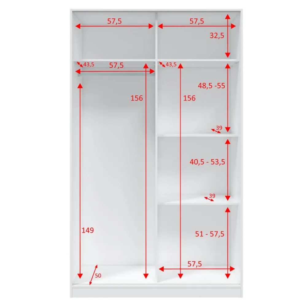 El armario TOP121A está dividido en dos cuerpos. En uno de los lados dispone de una barra de colgar aluminio extraíble y un estante superior (altillo). El otro lado cuenta con 3 estantes (4 huecos en total) para organizar ropa plegada.