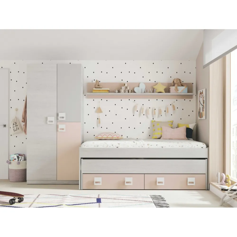 Pack cama nido doble juvenil NUBE y armario dos puertas