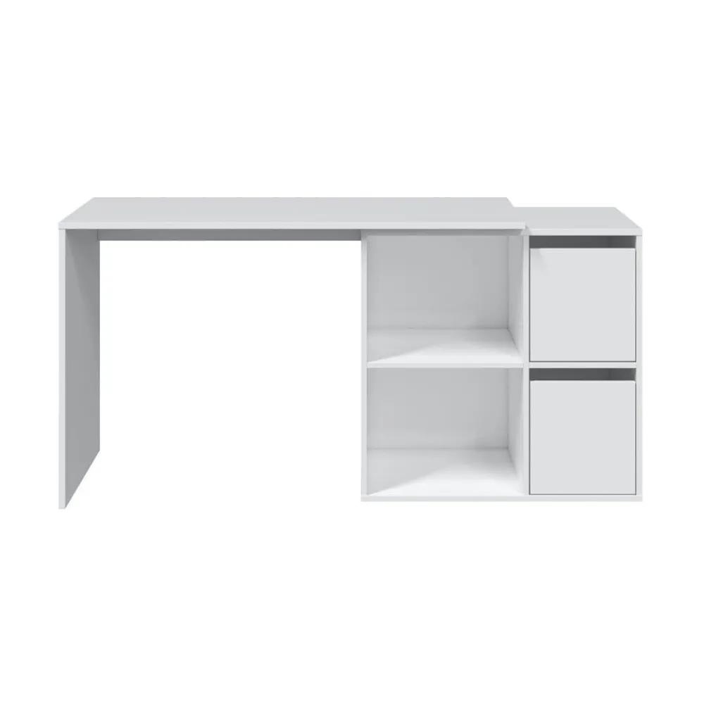 Escritorio angular o recto con un mueble con dos huecos y dos puertas. Una mesa de estudio que se adapta a tus necesidades. Se presenta en acabado blanco Artik.