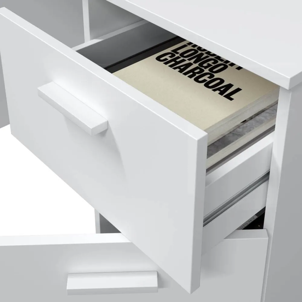 Escritorio con amplia encimera de 108 cm en blanco Artik, de diseño estilo minimalista, destaca por su amplia capacidad de almacenamiento y su bajo precio.