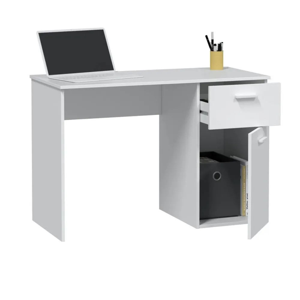 Mesa de estudio con un cajón y una puerta, en color blanco Artik. El mejor precio En here.