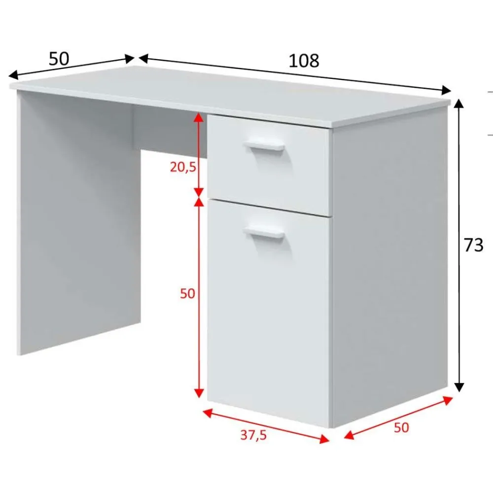 FORES Escritorios Juveniles Para PC|Escritorios Juveniles Minimalistas^Mesa Escritorio Just Blanco Artik, 1 Cajón 1 Puerta 108 X 73 X 50 Cm