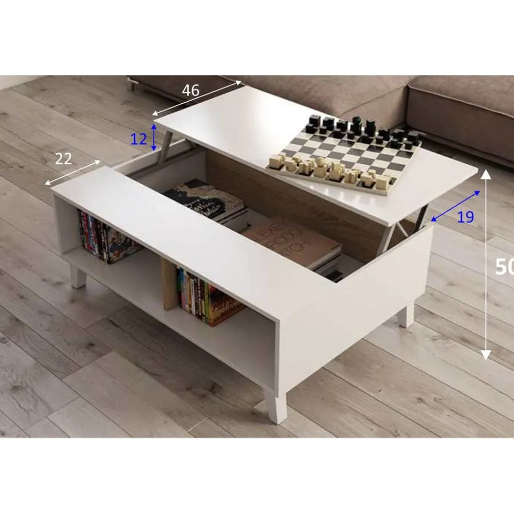 Si estás buscando una mesa elevable, la mesa de centro elevable Zaiken Plus, de estilo nórdico, está realizada en tablero de partículas revestido de melamina en color blanco brillo y roble Canadian y la puedes comprar mucho más barata En here.