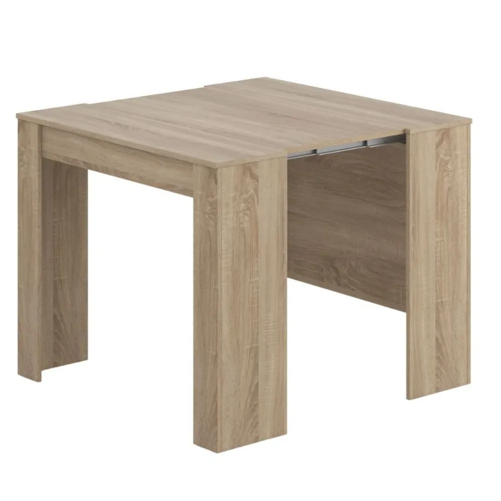 Mesa multifunción extensible, en color roble Canadian, con 5 posibles posiciones, mesa comedor extensible, mesa recibidor, mesa escritorio, mesa cocina, mesa plegable.