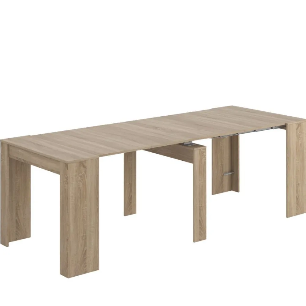La consola extensible dispone de 5 posiciones, gracias a las 4 extensiones que se almacenan discretamente entre las patas. Con un sistema de guías correderas metálicas, puedes expandirla fácilmente para dar cabida a hasta 10 comensales cómodamente sentados. ¡Es como tener cuatro mesas en una sola mueble!