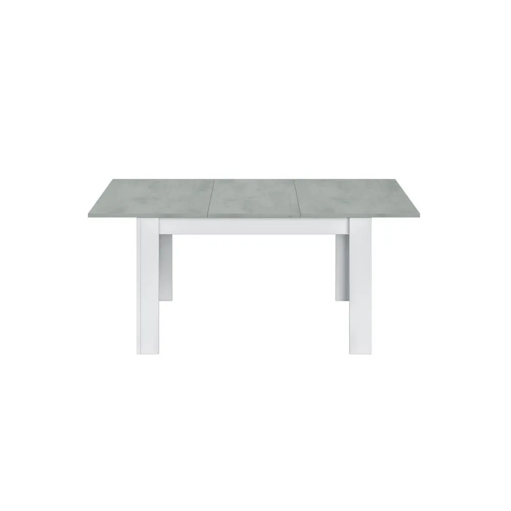 Una mesa para comer extensible Kendra es una opción perfecta para cualquier salón comedor. En este caso se trata de la mesa con encimera en color cemento y estructura en blanco Artik