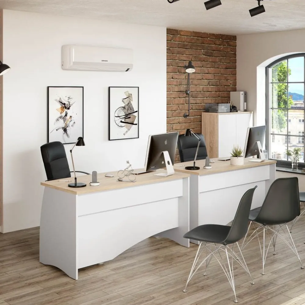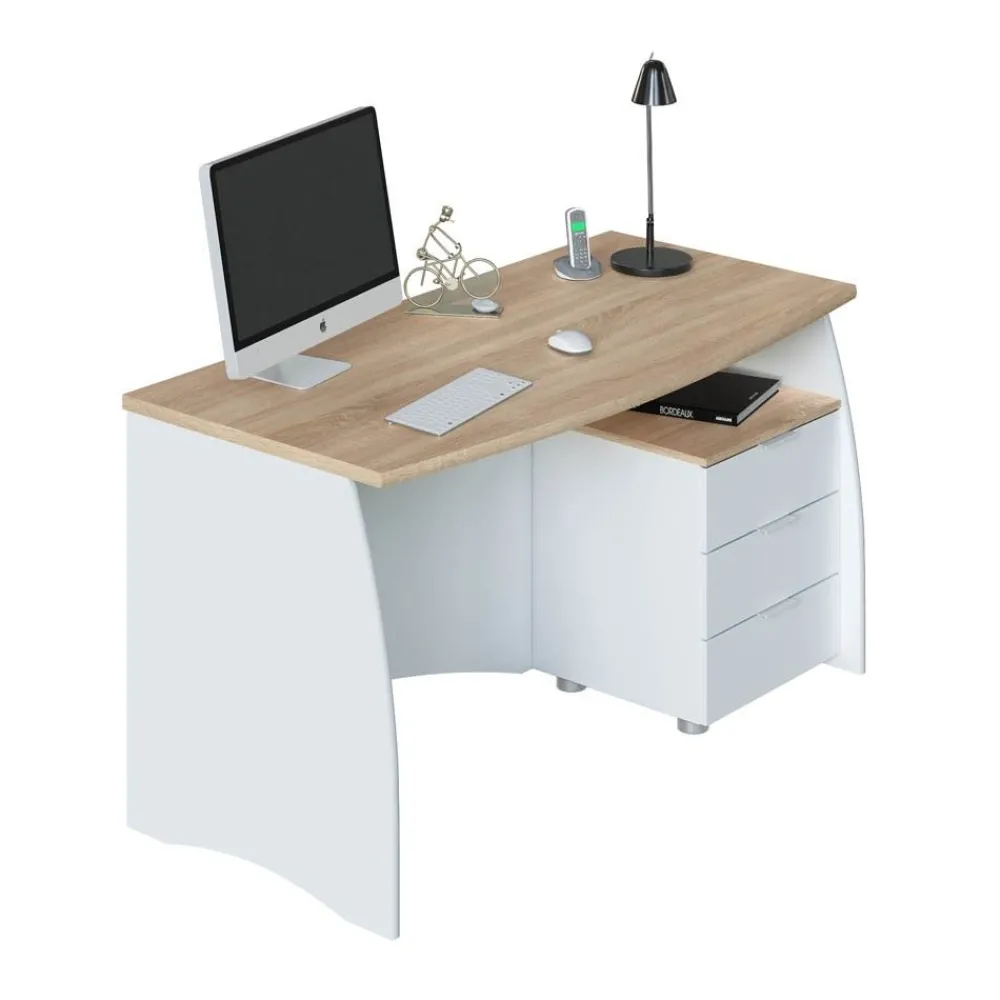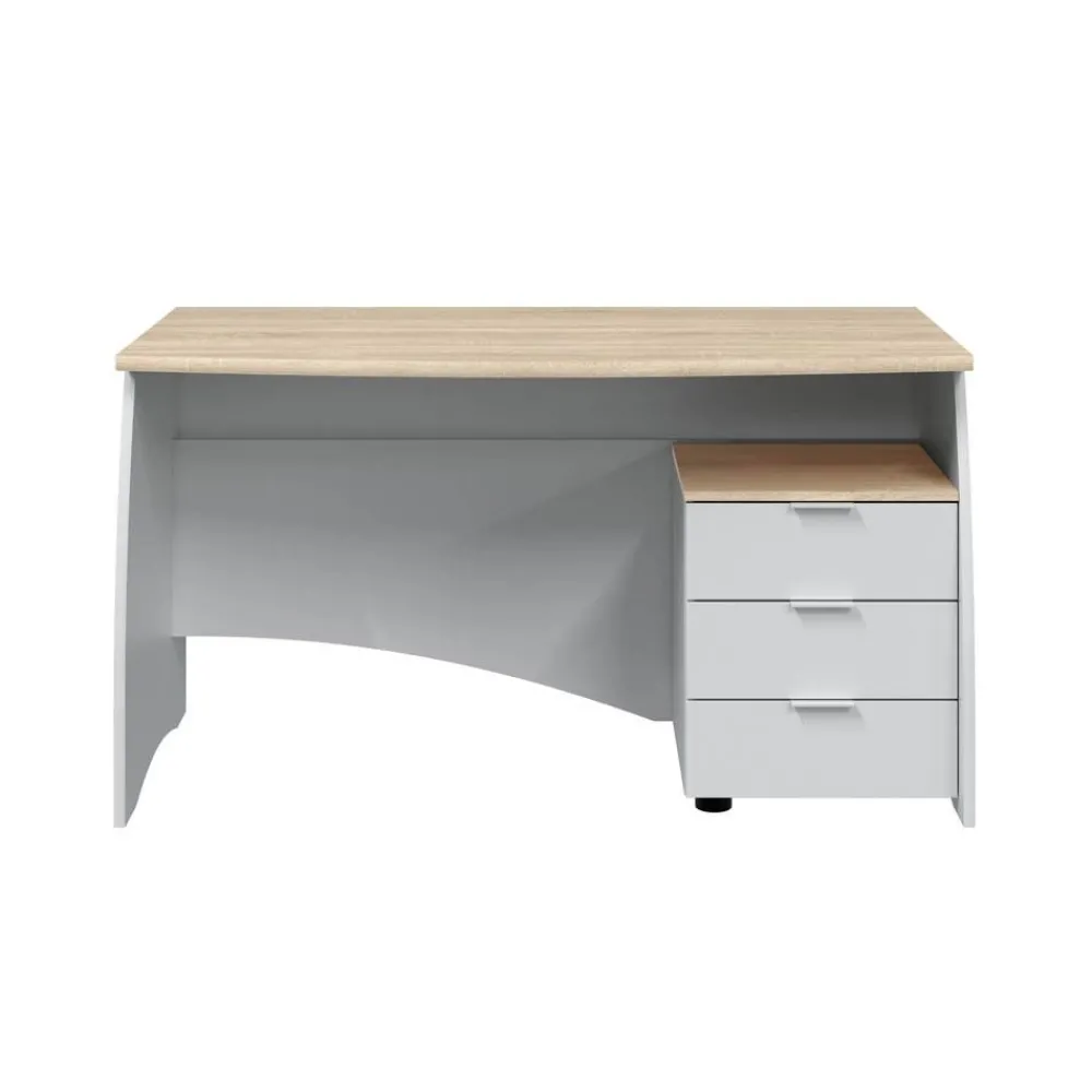 FORES Mesas De Estudio Y Escritorios Baratos^Mesa De Ofician Estil Con Tres Cajones Roble Canadian – Blanco Artik 136 X 74 X 67 Cm