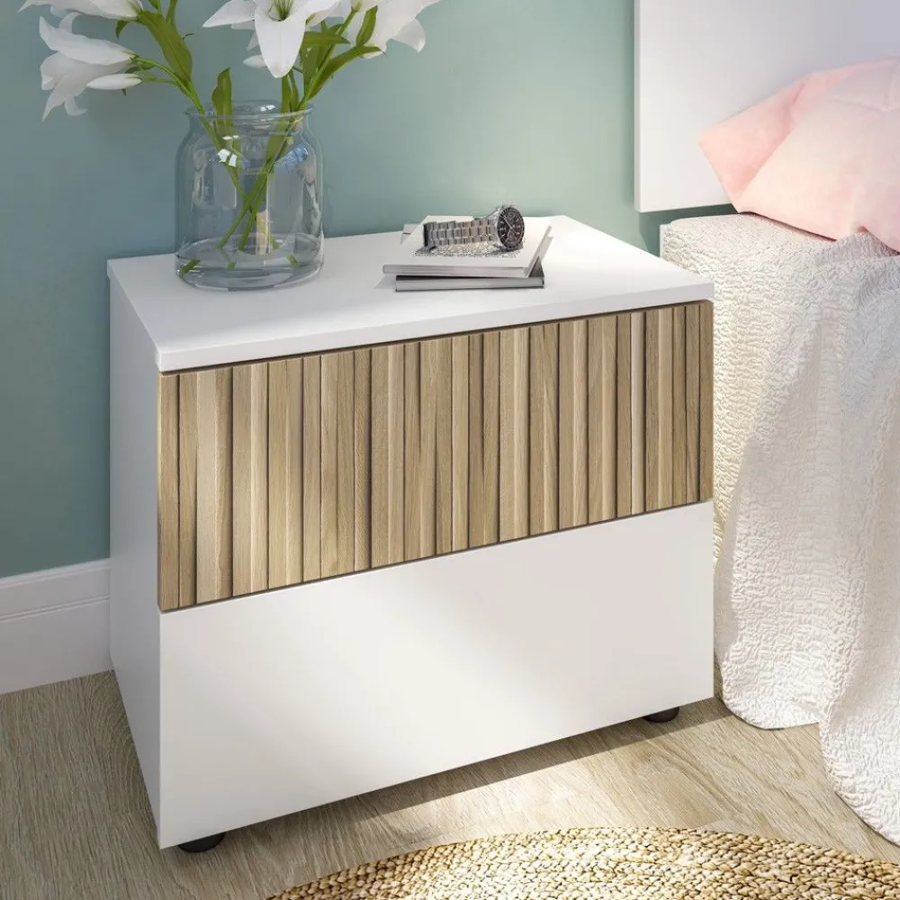 FORES Mesillas De Noche^Mesilla De Noche 2 Cajones Ethna Blanco Artik – Natur 50 X 41,5 X 34 Cm