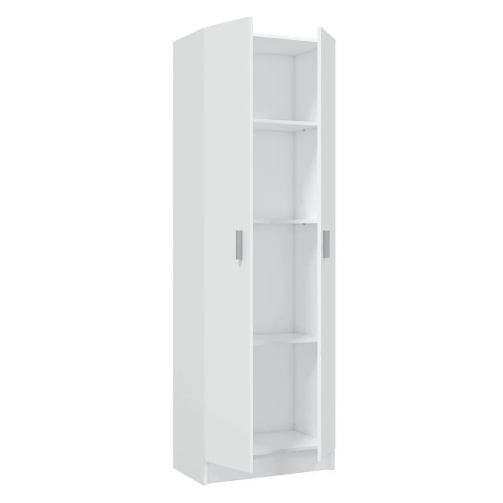 El armario despensero blanco de dos puertas Use aumenta la capacidad de almacenamiento de cualquier rincón de la casa, lo puedes colocar en un trastero o en cualquier habitación, pues al presentarse en color blanco combina bien en cualquier lugar