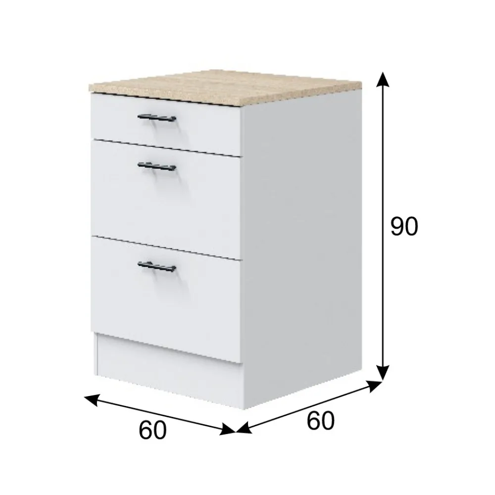 Más espacio, más orden, más estilo: Módulo bajo de cocina Kira 60 cm con 3 Cajones