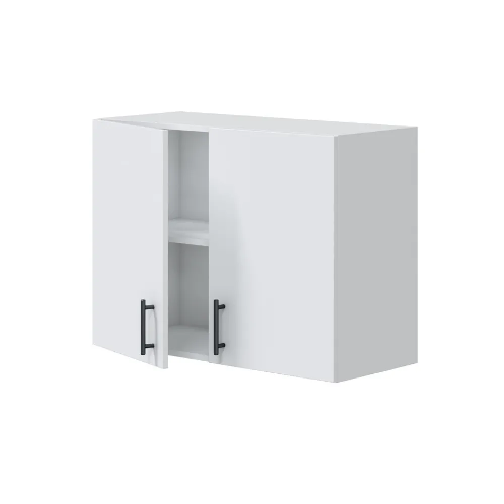 El módulo alto Kira de 80 cm es la solución ideal para maximizar el almacenamiento en tu cocina. Con un diseño de 2 puertas abatibles y un estante interior fijo, este mueble combina capacidad y estilo en un solo producto. Su acabado en blanco brillo aporta mucha luz a tu cocina, mientras que los tiradores metálicos en negro ofrecen un contraste elegante y funcional. Fabricado en melamina de alta calidad, es perfecto tanto como mueble independiente como para formar parte de una cocina a medida.