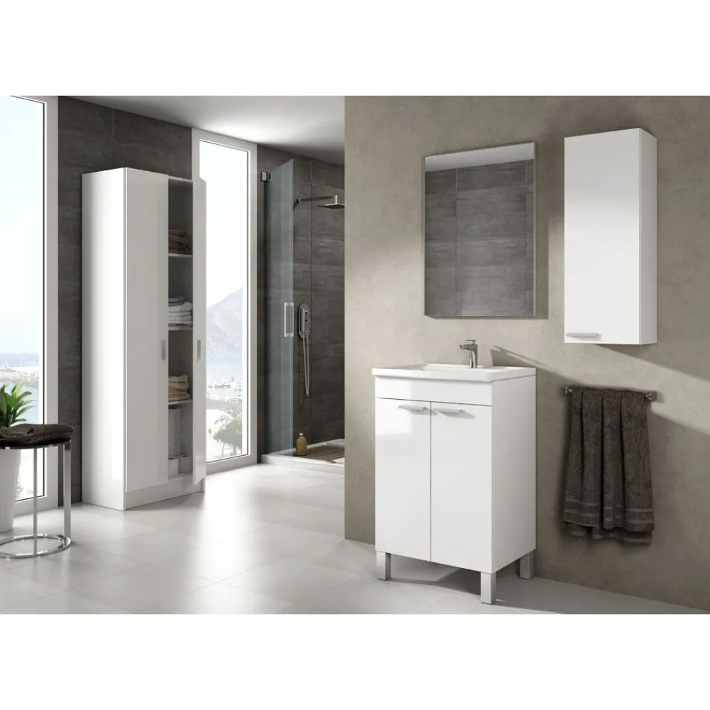 Se presenta en un bonito acabado blanco brillo, que aporta luminosidad a nuestro baño. Dispone de dos puestas con tiradores en color blanco brillo
