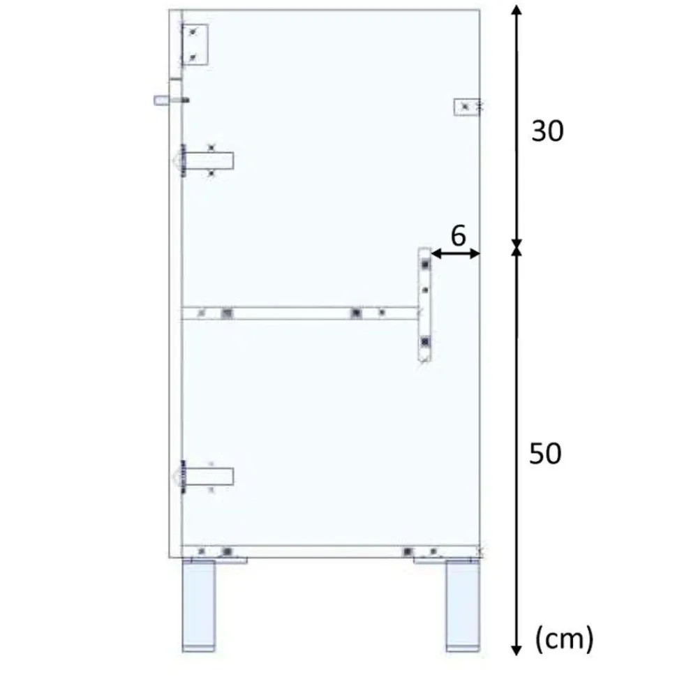 Se trata de un mueble de baño de 50 cm de ancho, dispone de un estante interior y el hueco necesario dentro para que todas las tomas de agua queden ocultas.