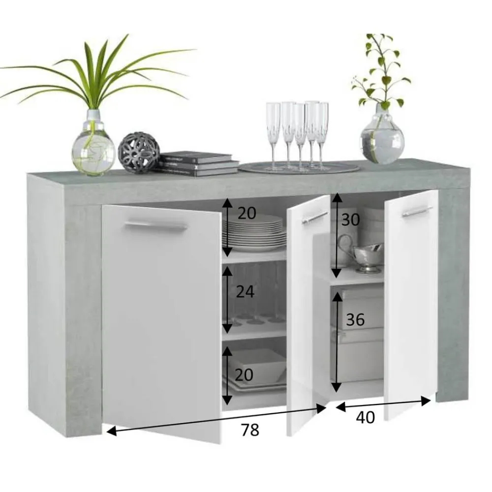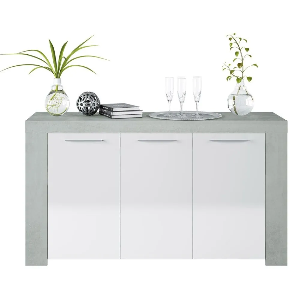 FORES Muebles De Salón^Aparador Ambit Cemento Y Blanco Artik 3 Puertas 144 X 80 X 42 Cm