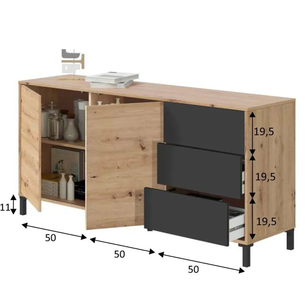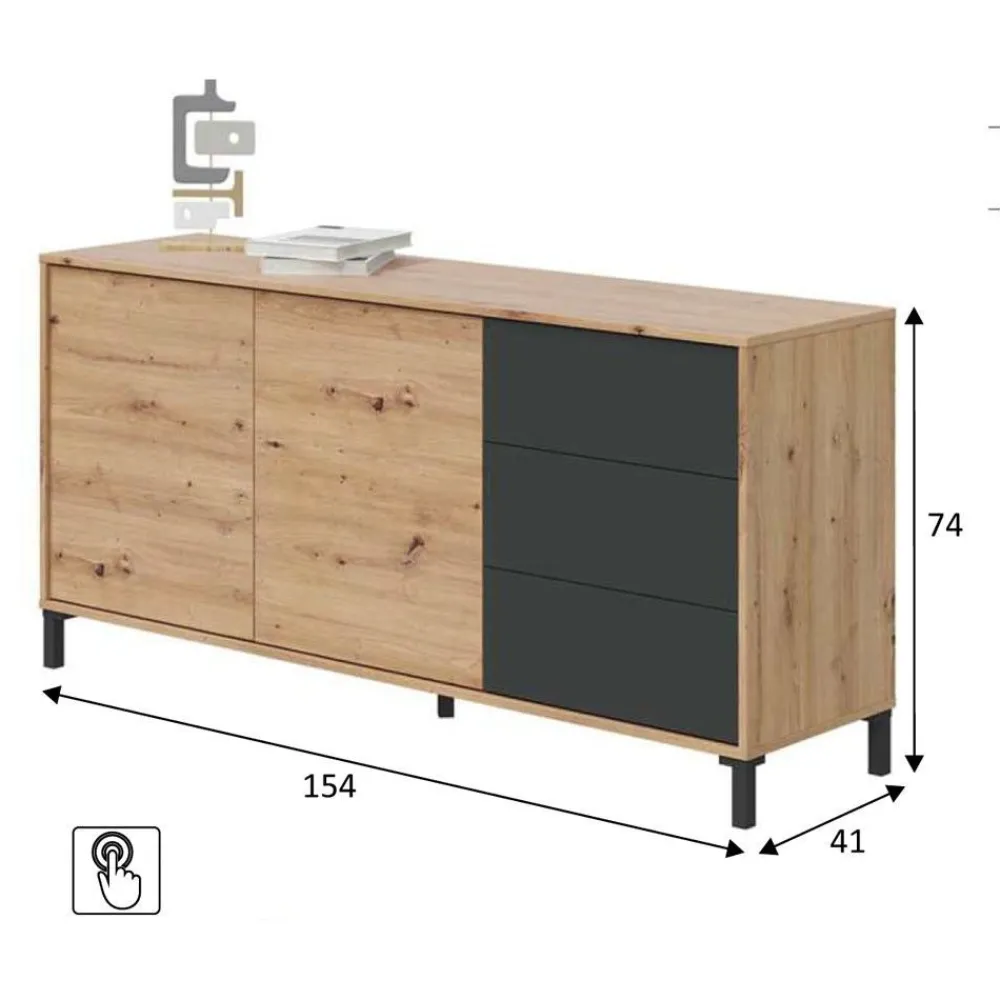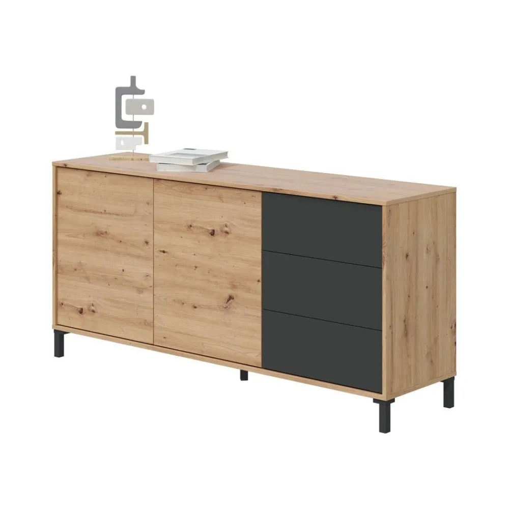 FORES Muebles De Salón^Aparador De Salón Brooklyn Roble Nodi – Antracita 2 Puertas + 3 Cajones 154 X 74 X 41 Cm