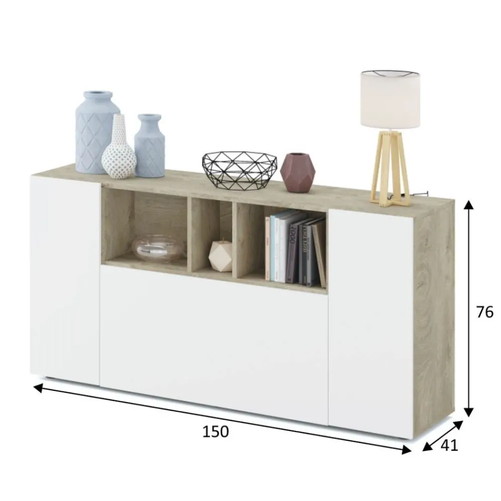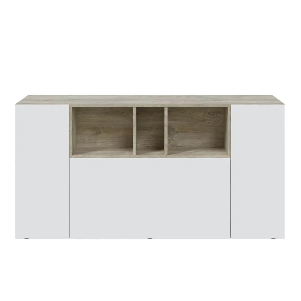 Aparador Loira Blanco Artik y Roble Alaska con 3 Puertas y Huecos