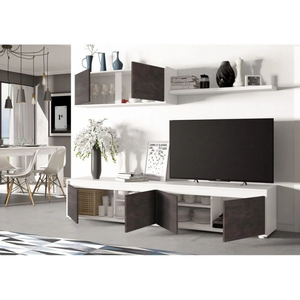 Conjunto para salón compuesto de un mueble de televisión con 4 puertas y un módulo superior de 2 puertas y un estante de colgar mucho más barato En here