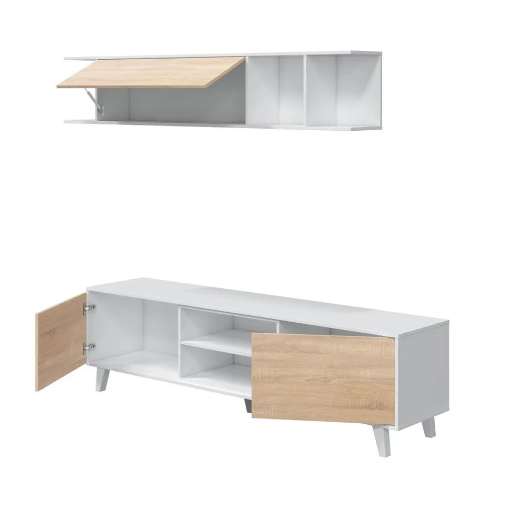 El mueble para salón comedor barato Zaiken Plus es una composición que sigue las líneas de diseño de mueble vintage combinado con él tan de moda actualmente estilo nórdico, lo que dota a este salón de una identidad propia y una presencia increíble.
