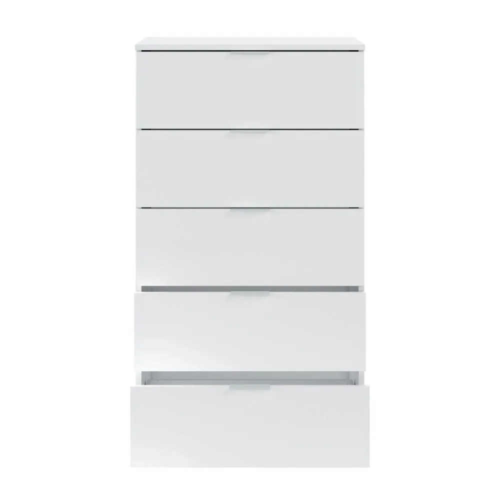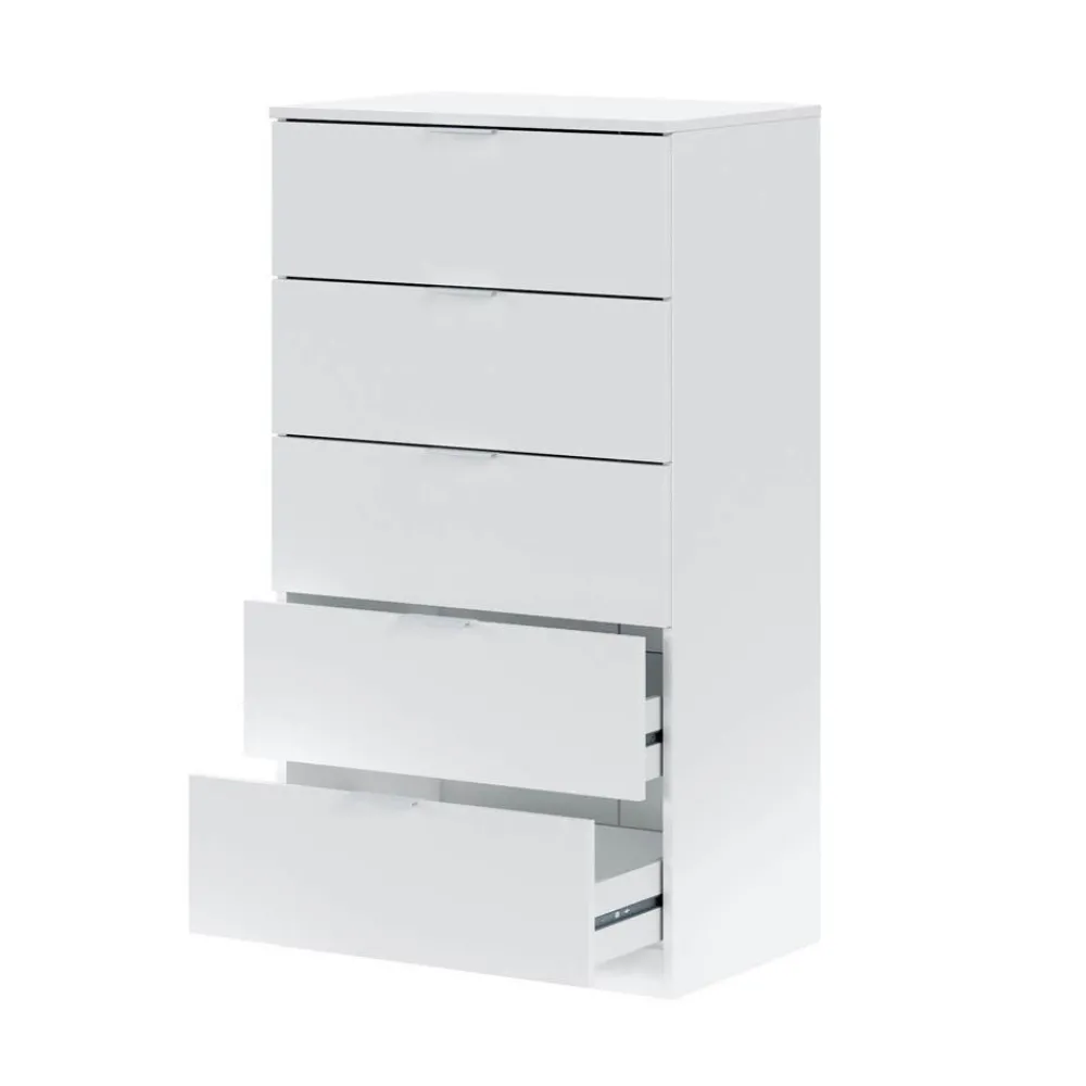 Sinfonier de cinco cajones en color blanco Artik, aumenta la capacidad de almacenaje de cualquier dormitorio.