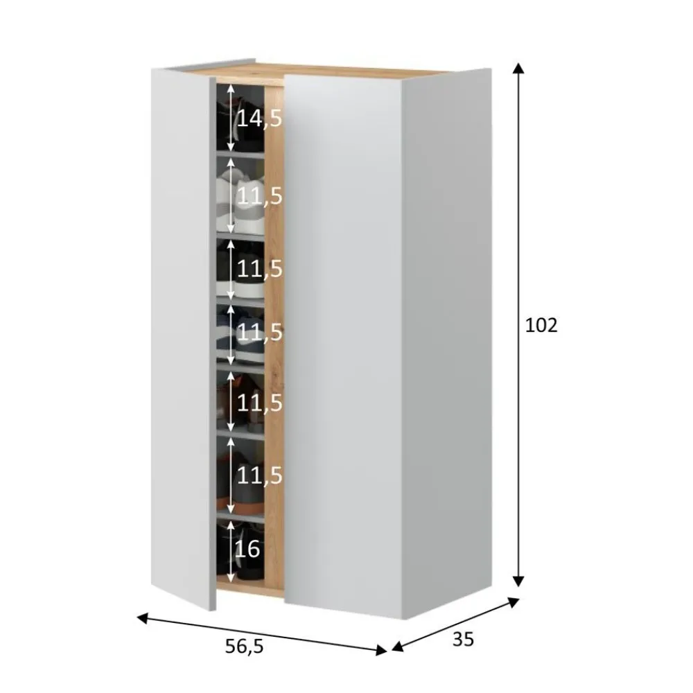 - Zapatero: 56,5 cm (ancho) x 102 cm (alto) x 35 cm (fondo).