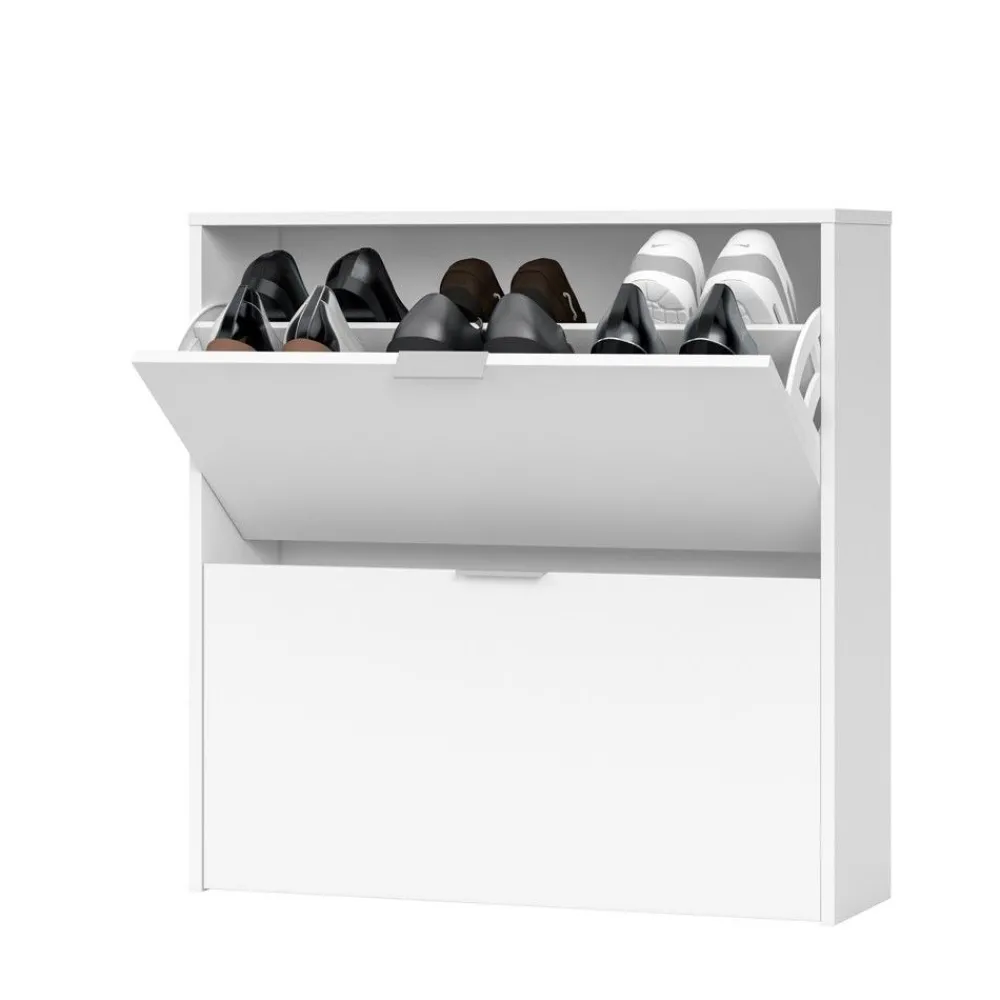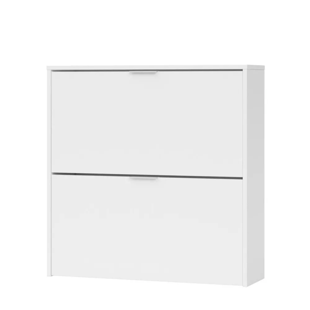 Con capacidad para almacenar hasta 16 pares de zapatos, este zapatero cuenta con dos puertas abatibles para facilitar el acceso a tus zapatos, en un solo vistazo, podrás encontrar tus zapatos favoritos. Además, su elegante acabado en color blanco se adapta a cualquier estilo de decoración, mientras que los tiradores de aluminio le dan un toque de estilo.