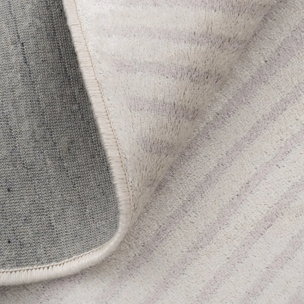 La en color beige es perfecta para decorar grandes espacios con un toque moderno y acogedor. El diseño geométrico ofrece un aspecto atemporal, mientras que la viscosa proporciona una textura suave y un brillo sutil.